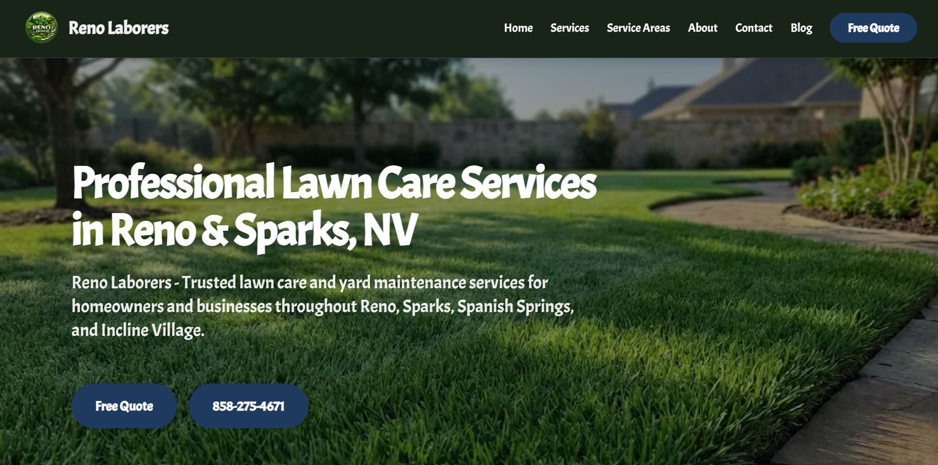 Reno Laborers, multipage seo optimized website built for a lawn care business in Reno Nevada.