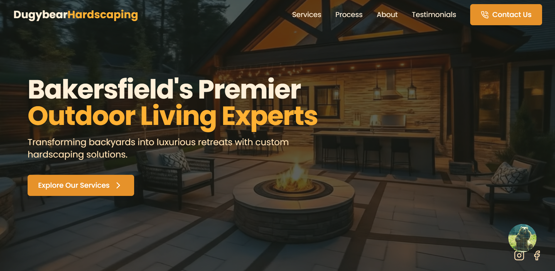 dugybear hardscaping, a brand in bakersfield CA using a video background and single paged.